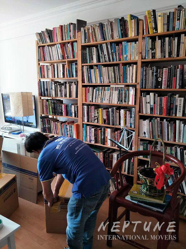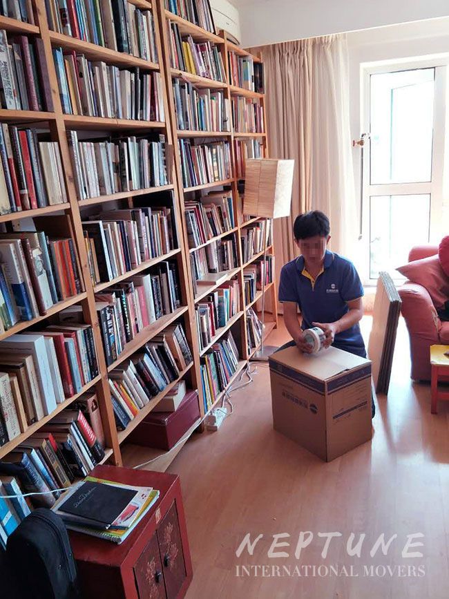 我们工作人员分为两小队对书籍进行包装,按照现有书籍的摆放顺序,并对各自打包好的书籍统一编号,确保这些书籍在运送到柏林拆箱的时候,还能够按照现有摆放顺序进行摆放,避免Tatlow因为搬运而带来的找书烦恼。除了对书籍包装进行编号,我们工作人员还会对包装的纸箱另外再进行防水加固,防止书籍在海运途中受潮,影响后面阅读者使用。
