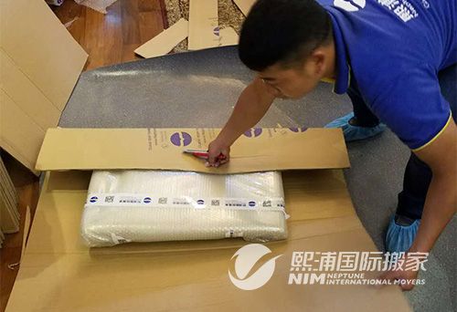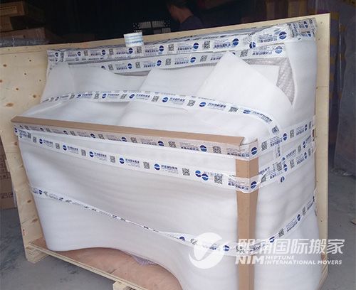 在约定的时间,熙浦国际的搬家师傅前往张先生在无锡的家中,对需要搬运的物品进行包装。在包装钢琴的时候,包装师傅先把钢琴盖打开,将里面的琴键固定,并一条专业的泡沫条放入音锤下,以防止音锤断裂。然后再用熙浦国际提供的防震泡膜和珍珠棉里三层外三层的包裹,以避免在搬运的过程中,钢琴与其他物品发生摩擦导致琴面刮花。在包好防震泡膜和珍珠棉之后,钢琴外部采用硬纸板包裹,做了一个大小合适的钢琴形状的纸箱把钢琴装裹起来。最后包装好的钢琴送到熙浦国际在上海的仓库,装进专门定制的木箱,木箱的木材符合海关放行要求,不需要另外进行熏蒸。