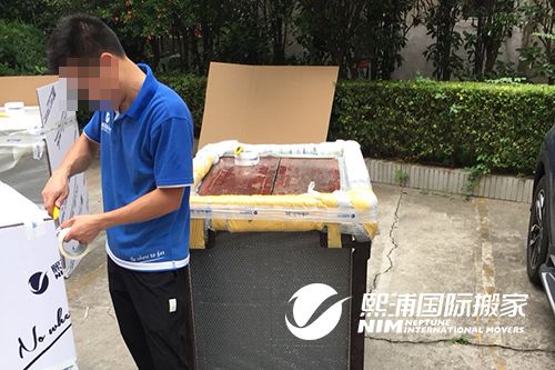 按照约定,熙浦的工作人员及督导员带着专用的包装材料和工具,前往上海浦东新区陈小姐的家中,对所要运输的家私进行打包处理。江南已经进入梅雨期,闷热的天气着实令人讨厌,熙浦的师傅顶着夏日,用娴熟的包装手法对物品进行打包。