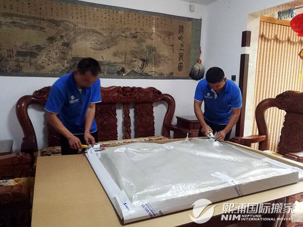 按照孙女士的出行计划安排,这天,熙浦的搬家打包师傅携带专业的包装材料前往武汉孙女士的家中对所要搬运的物品进行打包。孙女士要托运的物品大多是家具,包装上需要用多种包装材料进行打包,在里面用珍珠棉等软材料包裹,边角处用上护角,在外面用硬纸板按照家具的形状进行裁剪后再包裹起来。现场的孙女士对熙浦打包师傅的包装技法很满意,对她物品安全运到澳洲又增添的信心。