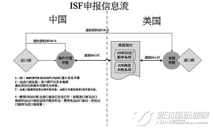 以上是熙浦国际搬家为您带来的:《美国ISF申报是什么?与AMS申报有何区别?》全部内容。熙浦国际搬家专业从事国际海运/空运搬家;家具家私/私人物品/行李跨国托运;搬家出国/回国门到门双清关一条龙服务。全国县级以上城市上门包装、取件,业务范围覆盖全球近百个国家/地区。