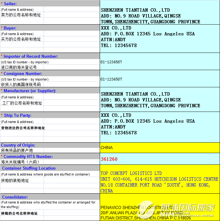 介绍完了新规的那么多项内容之后,我相信大家都还是一脸懵逼的。都说实践是最重要的,那就把一份模板放上来让大家参考一下,看过之后以后就知道需要怎么填写ISF申报表格内容。