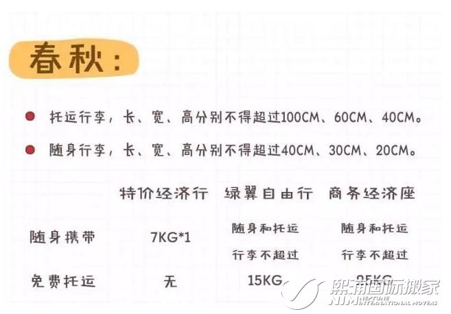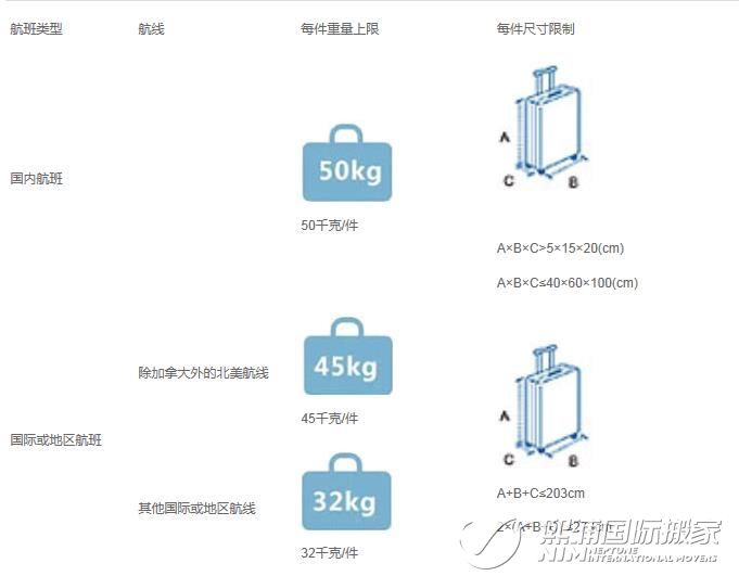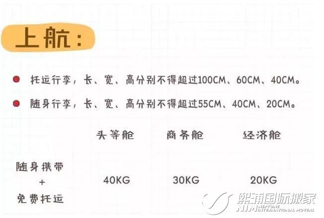 以上是熙浦国际搬家为您带来的:《2019年各国际航空公司行李托运规定》全部内容。熙浦国际搬家专业从事国际海运/空运搬家;家具家私/私人物品/行李跨国托运;搬家出国/回国门到门双清关一条龙服务。全国县级以上城市上门包装、取件,业务范围覆盖全球近百个国家/地区。