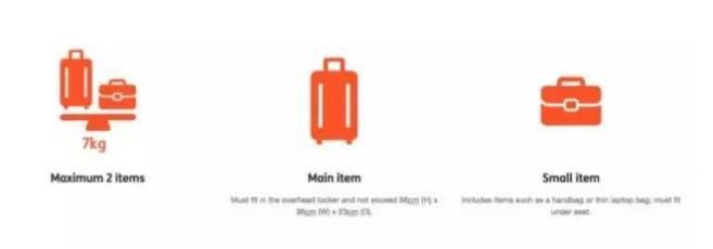 和Virgin要求相同,没有手提行李可以升级,最多携带两件行李登机,总重量7公斤以下。2件手提行李,每单件重量不超7公斤。