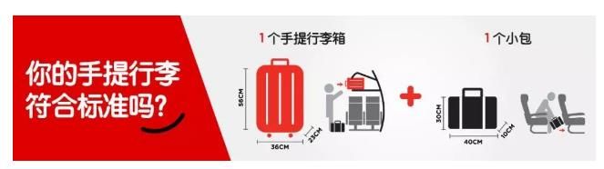 托运行李需到官网行李计算器实时查询;随身行李,包括1件标准物品和1件个人物品:标准物品23厘米 x 40厘米 x 55厘米,10千克;个人物品16厘米 x 33厘米 x 43厘米,10千克。
