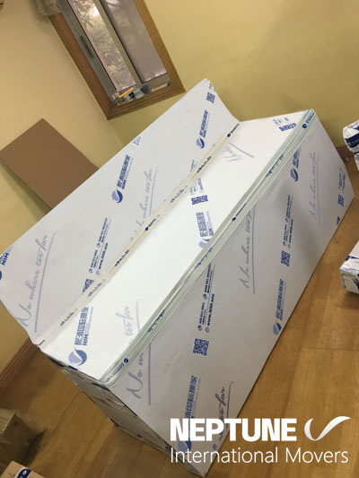 在熙浦国际的搬家师傅上门包装的时候,才真正感觉到他们的专业和放心。包装时,4、5个包装师傅,大家一来就很快的将带来的包装材料将家里的行李和家具分头包装。有的在房间 包装柜子,有的在客厅包装电视柜和沙发。还有的厨房包装餐具,大家都各司其职,很快,一箱箱的物品都从家 里搬到阳台上清点了。当然还有那个我很喜欢的大钢琴。在包装钢琴的时候,我还真有点担心会刮花或者有些碰撞。只见包装师傅将钢琴盖打开,将里面的琴键固定,并一条专业的泡沫条放入音锤下,说是可以防止音锤断裂。听到包装师傅的解说,我放心了,因为他们很专业,他们已经包装过很多次钢琴了,很有经验。弄好后,便将钢琴的脚拆卸下来,这样可以防止琴腿断裂。然后熙浦国际提供的防震泡膜和珍珠棉里三层外三层的包裹,说是可以避免钢琴和其他物品摩擦导致琴面刮花,真是专业啊,我都没有想到,师傅们都帮我想好了。
