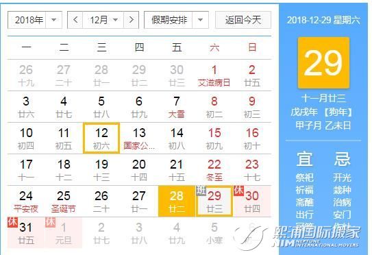 以上是熙浦国际搬家为您带来的:《关于2019年元旦节放假通知》全部内容。熙浦国际搬家专业从事国际海运/空运搬家;家具家私/私人物品/行李跨国托运;搬家出国/回国门到门双清关一条龙服务。全国县级以上城市上门包装、取件,业务范围覆盖全球近百个国家/地区。